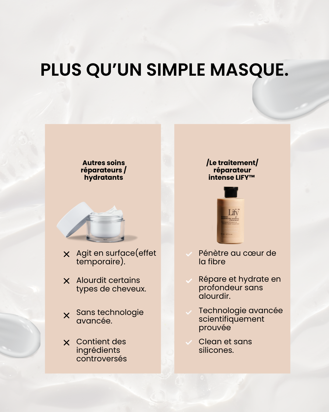 *Résultats obtenus après application du soin réparateur intense LIFY™ avant le shampoing.
